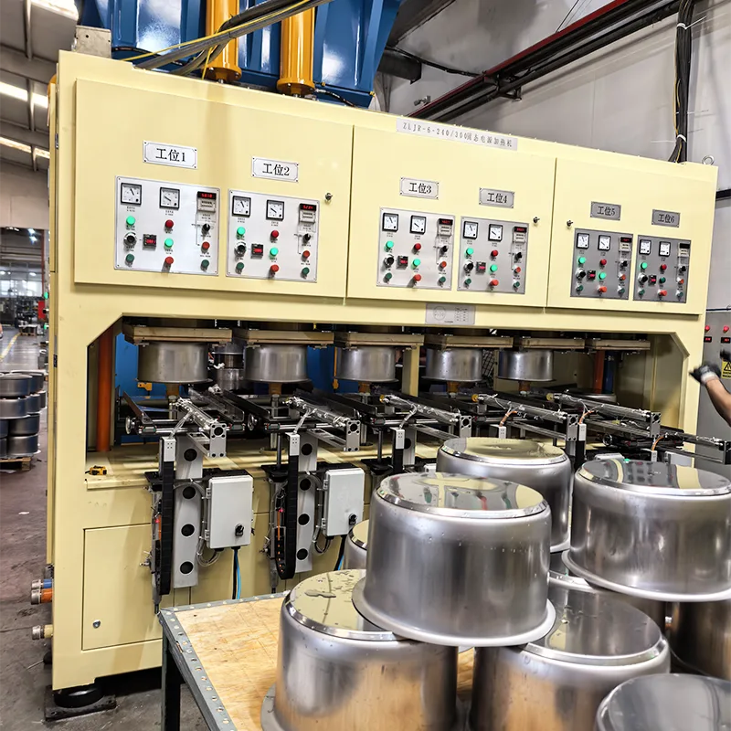 אתר עבודה של מפעל ידוע לייצור סירי נירוסטה באמצעות מכונות חימום סיבוביות