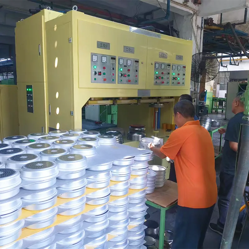 מכונת חימום מוטבעת בת חמש תחנות לייצור אוטומטי של ציפוי תחתית סיר נירוסטה